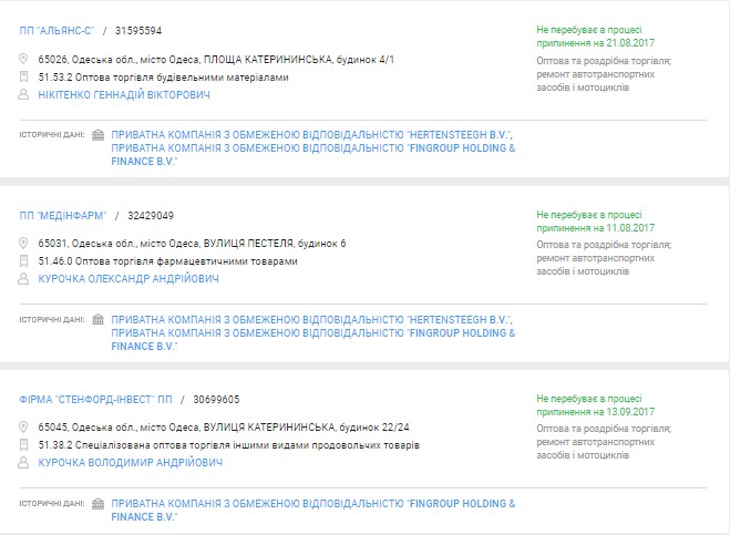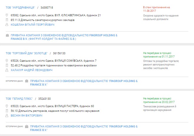 А тепер — уважно, бо вже про місцеве. У засновниках Укрздравіци і Одестрансбуда вказані Стенфорд-інвест і FINGROUPHOLDING & FINANCE B.V., а далі адреси і прізвища починають повторюватись по колу: Катерининська площа 4, Пастера 60 і Єлісаветинська 21. Все це знадобиться нам дещо пізніше, а поки що ми запам`ятаємо вводні.