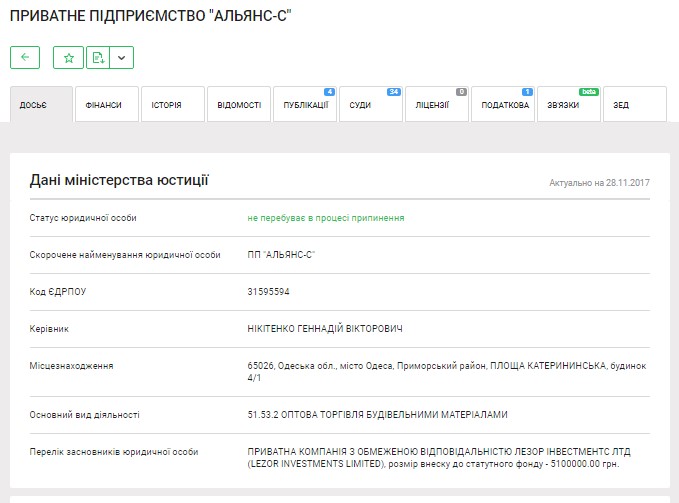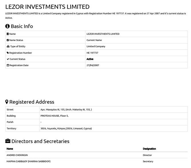 Сама ж компанія є донькою кіпрської Lezor Investments Limited, очолюваною Андрієм Чекригіним (його ми теж бачимо у списку засновників Соцкому).