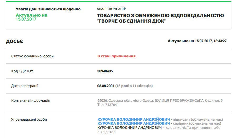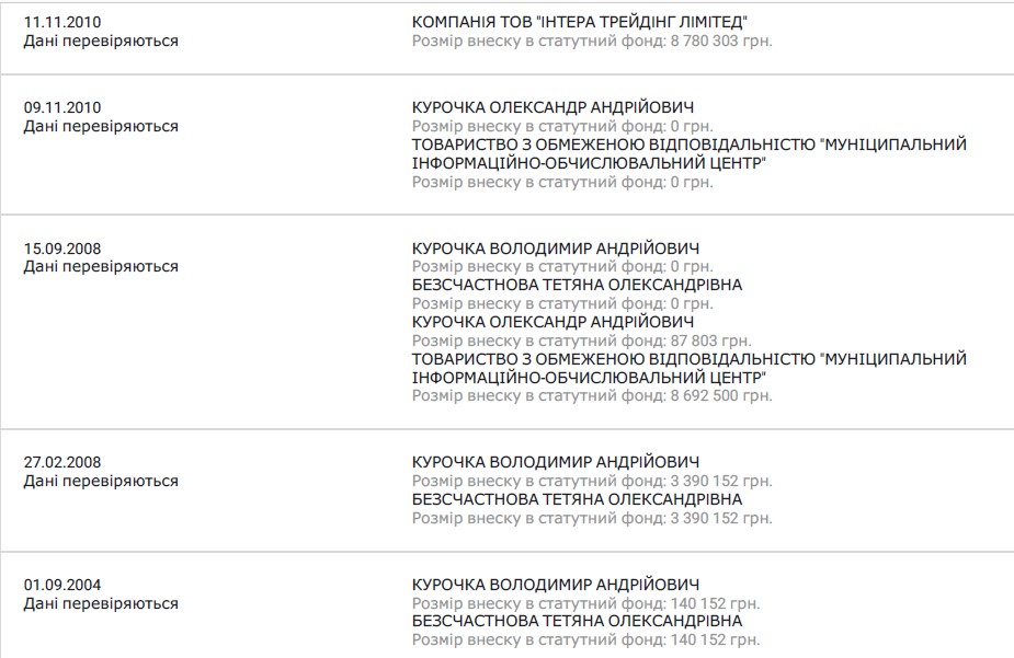 Ну і бонусом — одна з цікавих зв`язкок Курочки і Лампочки (так, мені теж здається, що я описую дитячу казку). У переліку засновників “Творчого об*єднання “Дюк” у 2004-му і 2008-му році (а тут звертаю вашу увагу на розмір внеску у статутний фонд) поруч із прізвищем Курочки ми бачимо Безсчастнову Тетяну Олександрівну.