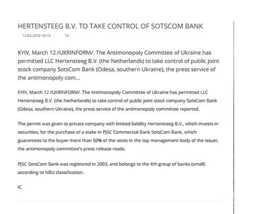 Справи Соцкомбанку йдуть по-різному, і вже у 2010-му році акції банку, що на той момент визнається банкрутом, перекупає нідерландська компанія Hertensteegh B.V., представником якої в Одесі є — о диво – Олег Зінько.