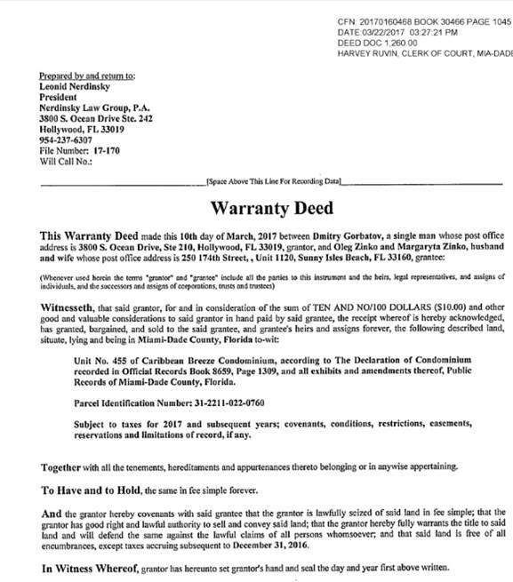 Продовжимо відстежувати зв`язки у лавах одеських забудовників і шукати документальні підтвердження впливу на місцеві розклади, а для цього перенесемось у Флоріду слідом за родиною Галантерника-Зінько.