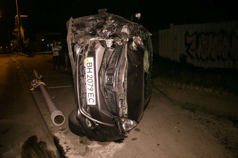 В Киеве пьяная девушка на Honda влетела в ВАЗ и перевернулась