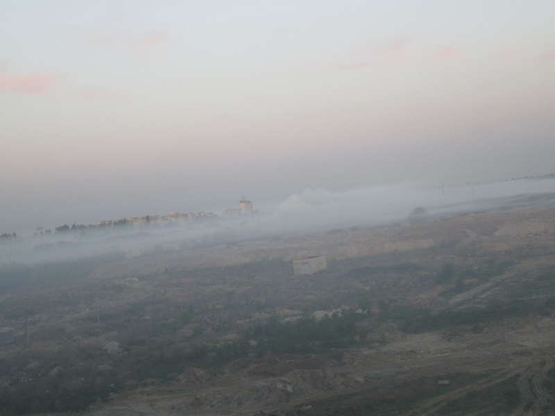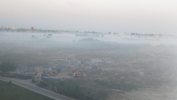 Подольский район Киева 5 мая затянуло дымом с запахом гари. Вероятно, смог является следствием пожара на фруктовых садах агрокомбината, который произошел накануне.