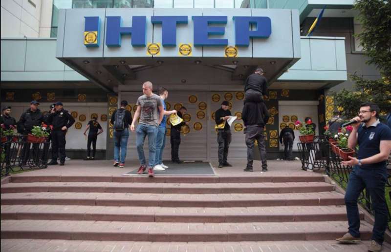 Здание телеканала "Интер" заблокировал "Национальный корпус"