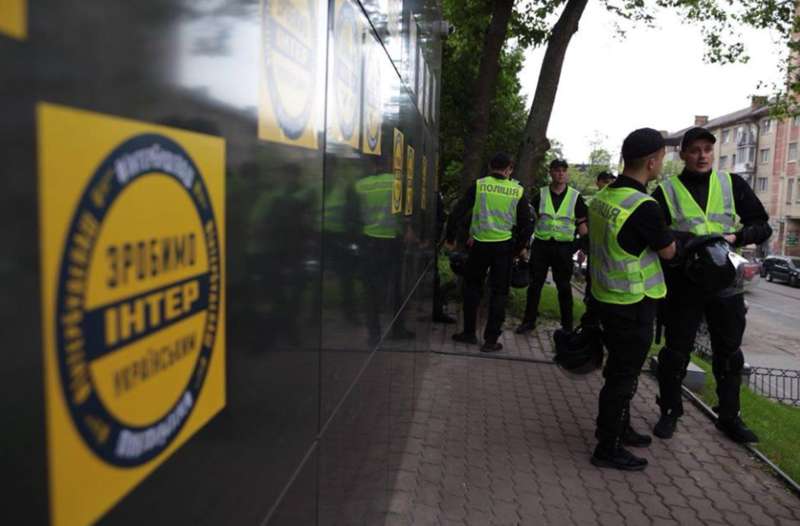Представители Нацкорпуса заявили, что они блокируют "Интер", чтобы не допустить показ в телеэфире концерта в честь "Дня Победы".