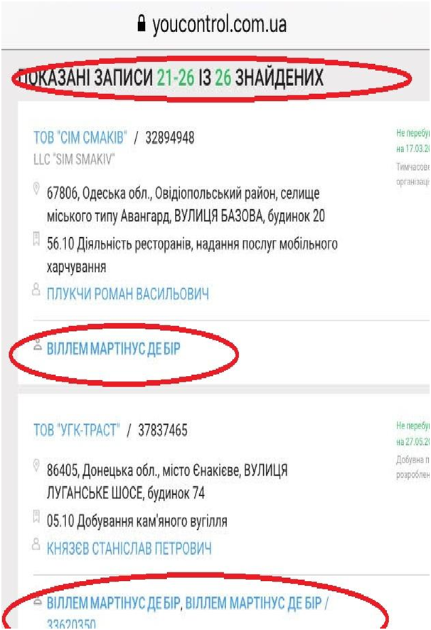 Виллем Мартинус де Бир – малоизвестный для широкой общественности персонаж, хотя судя по количеству упоминаний в едином госреестре юрлиц, мог бы не сходить с обложек рейтингов богатейших бизнесменов Украины. Владелец "заводов, газет, пароходов" гражданин далекой Южноафриканской Республики г-н де Бир –бенефициарный собственник десятков украинских компаний, задействованных в основных отраслях экономики. Правда, есть нюанс: большинство этих компаний связано с одиозным экс-регионалом Юрием Иванющенко.