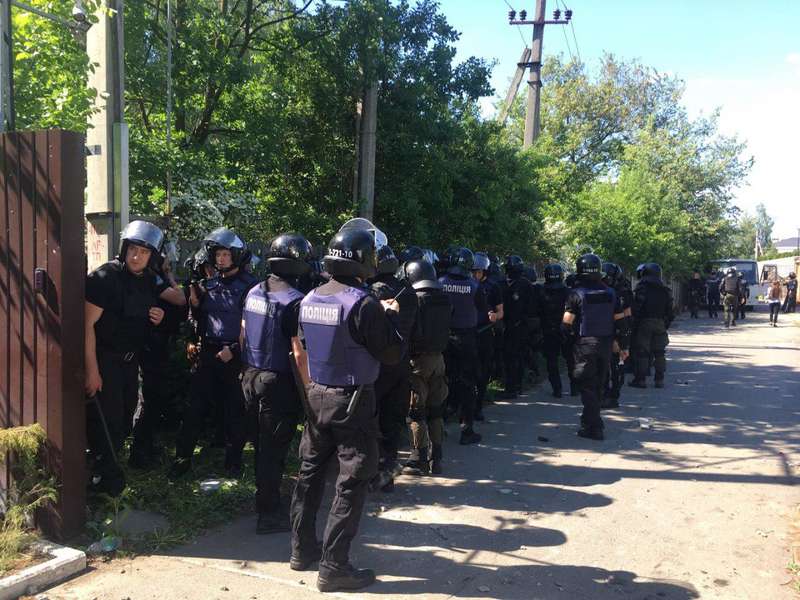 Как сообщает «Радіо Свобода», националисты, оттеснив правоохранителей, снесли ограждение на улице Луговой.