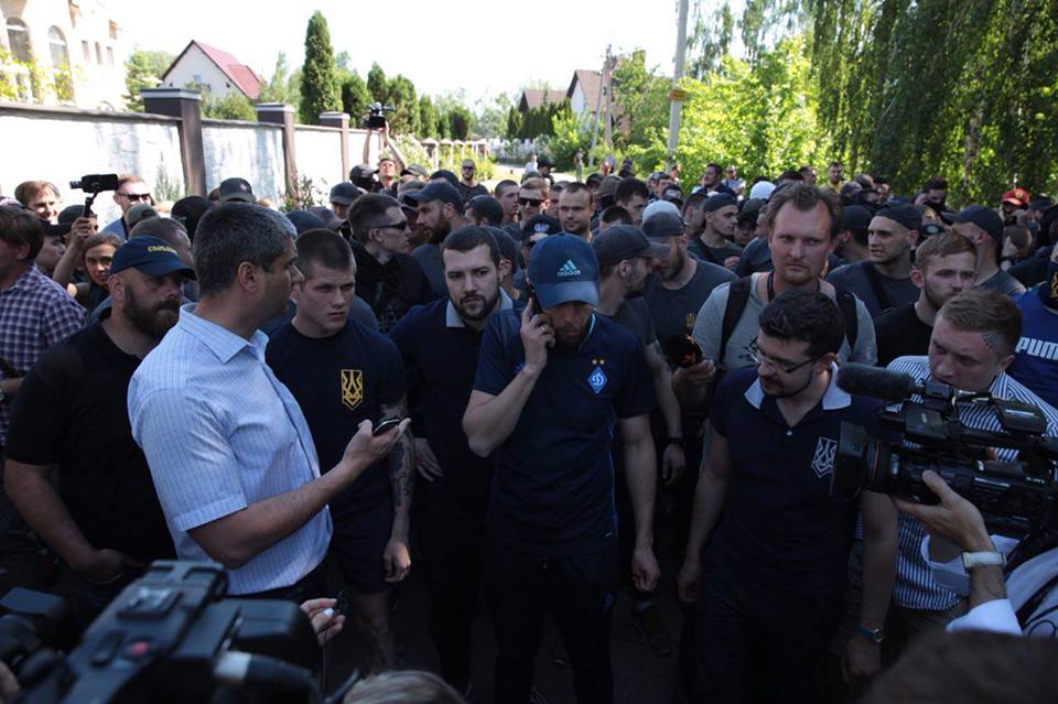 Как сообщает «ТСН», позже члены «Национального корпуса» прорвали оцепление правоохранителей возле дома Левочкина и подожгли файеры. Проникнув на территорию помещения, активисты ходили по недостроенной части двора, обрисовывали здание граффити и клеили на стены постеры с надписью «Интер будет наш». Отмечается, что в результате столкновений пострадал один журналист.
