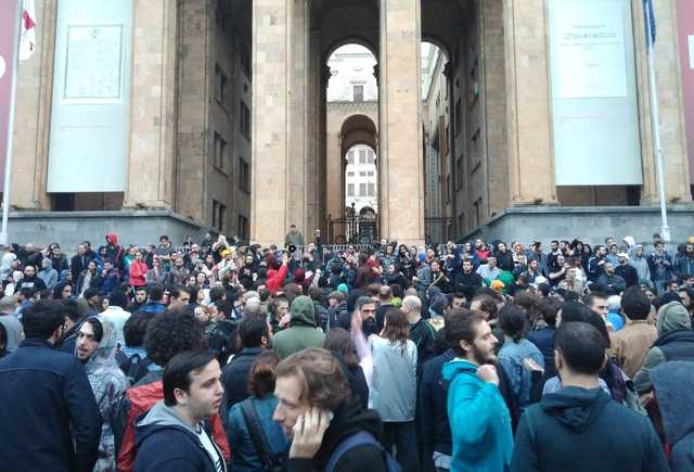 СМИ Грузии пишут, что обыски, проведенные грузинской полицией, спровоцировали беспорядки на улицах Тбилиси. Недовольные жители города в конечном счете направились к зданию парламента страны на проспекте Руставели. По данным телеканала Рустави 2, возле парламенте начались столкновения протестующих с полицией. Спецназ оцепил площадь, несколько человек были арестованы.