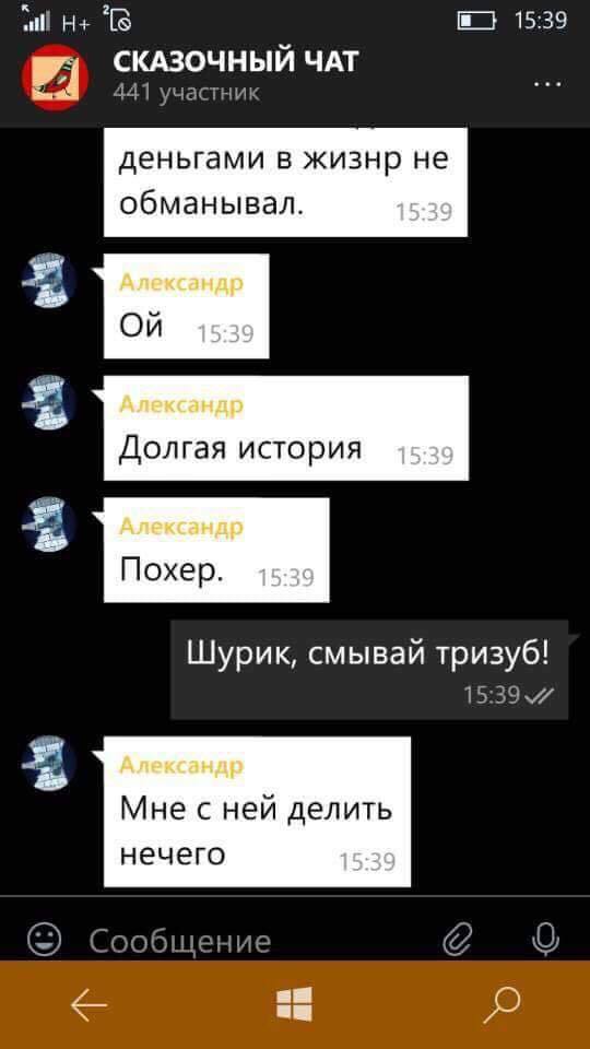 "Чисто по человечески, лично я была в большом шоке, увидев одну из жертв его "любви и идейной близости", хотя удивить меня сложно. Это отощавшая сутулая девочка, с потухшим взглядом, безустанно повторявшая: "Ну как же, он ведь говорил... он не мог, он еще образумится". Эта девочка перечисляла ему ежемесячно 5000 из своей крошечной зарплаты в 6000. Эту девочку, когда она обратилась к Оле узнать, все ли ок с Сашей, он называл сумасшедшей преследовательницей. Это мерзко", - написала журналистка.