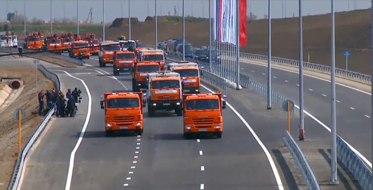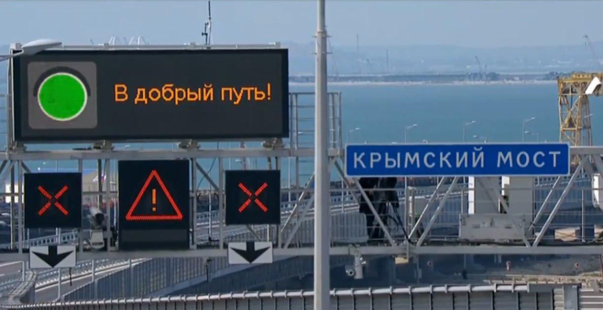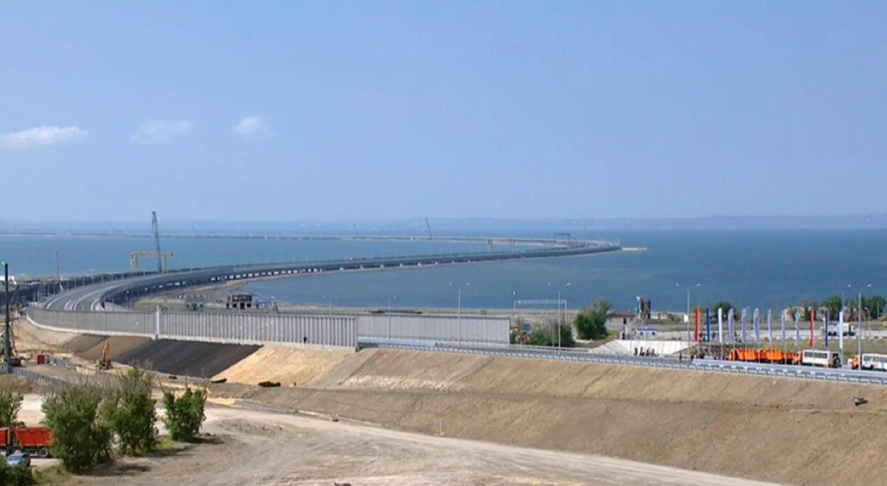 В аннексированном Россией Крыму оккупанты провели официальную церемонию открытия автодорожной части Крымского моста, который должен соединить оккупированный полуостров и территорию РФ.