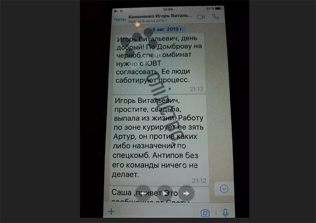 Благодаря этим сообщением с месседжера WhatsApp, который сам депутат-беглец показал журналисту Дмитрию Гнапу в Куршавеле, становится понятно, как, Игорь Кононенко заходил на рынок газа, с Курченко торговались о 112 канале и т. д.