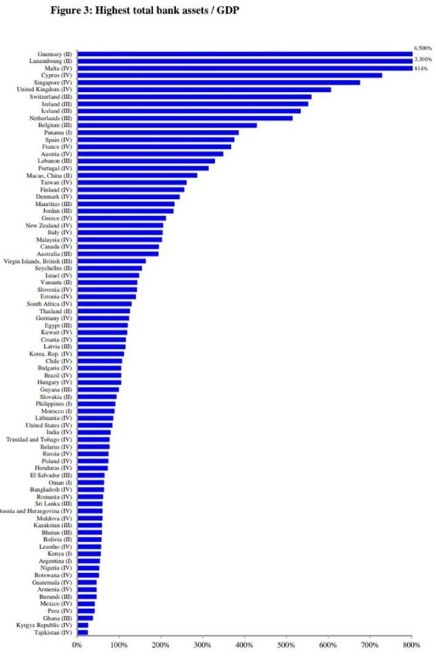 В развитых странах объем банковских активов к ВВП очень сильно разнится. Лидерами являются страны в которых банковский бизнес является основой экономики Люксембург, Сингапур, Великобритания, Швейцария, имеют объем активов банковской системы в 5+ раз превышающей уровень ВВП этих стран. В промышленном Китае объем активов банковской системы в 1.8 раза превышает ВВП, в Германии в 1,24 раза, в США соотношение банковских активов к ВВП составляет 81%.