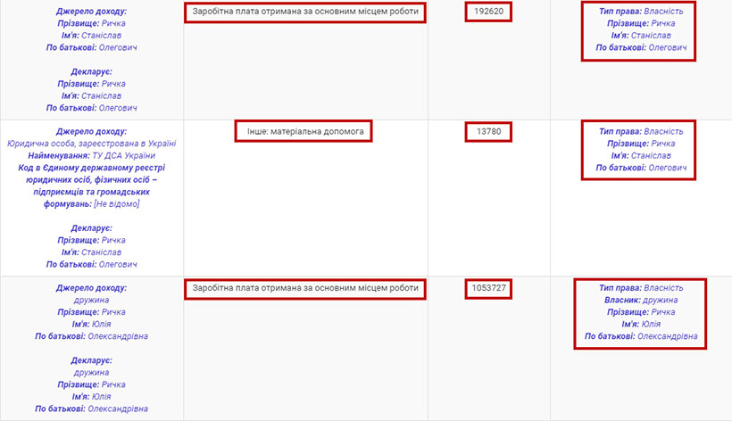 Наше внимание привлекла большая сумма наличных средств у судьи, которая в более поздних декларациях бесследно исчезла. Кроме того, мы обнаружили, что мать судьи оперирует миллионами и покупает дорогостоящую недвижимость. Можно ли считать это результатом плодотворной работы прокурорско-судейской семьи? Знакомьтесь, судья Заводского районного суда города Каменское Станислав Олегович Рычка.