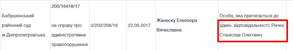 Из реестра судебных решений становится известно, что Рычка Станислав Олегович 22. 02. 2016 в 21:10 часов управляя автомобилем «Крузер», двигаясь по ул. Гоголя, нарушил правила дорожного движения. Следует отметить, что такой автомобиль есть у матери судьи, и если он им пользуется, то его нужно декларировать.