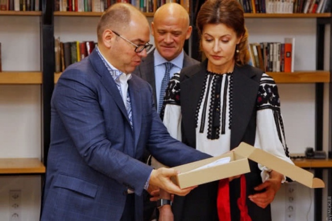 На фото, размещенных на сайте, видно, что рядом с женой президента находятся мэр Одессы Труханов и председатель Одесской ОГА Максим Степанов.