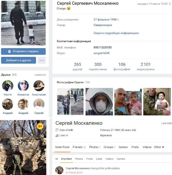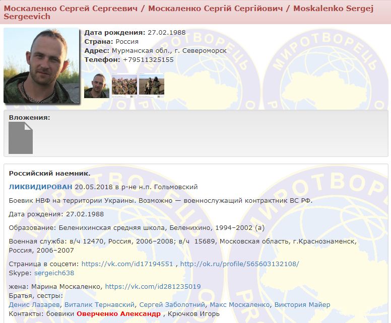 При этом Москаленко был внесен в базу «Миротворца». Возможно, он был военнослужащим-контрактником ВС РФ.