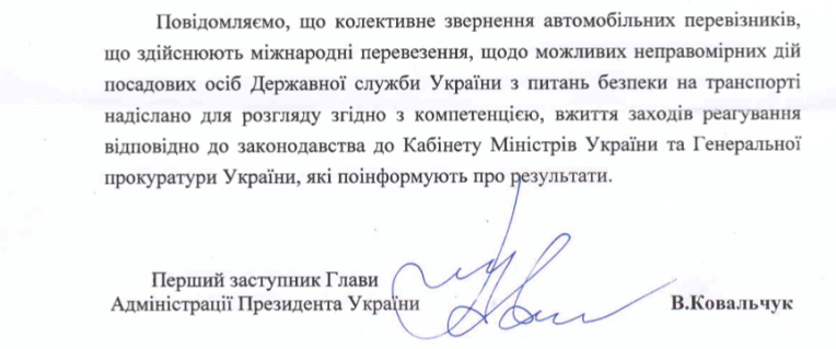 Два года назад я привел пример обращения транспортников к высшему руководству страны. Написал, что следующее письмо надо будет писать турецкому султану. Но... в прошлый месяц написали главе Одесской ОГА: