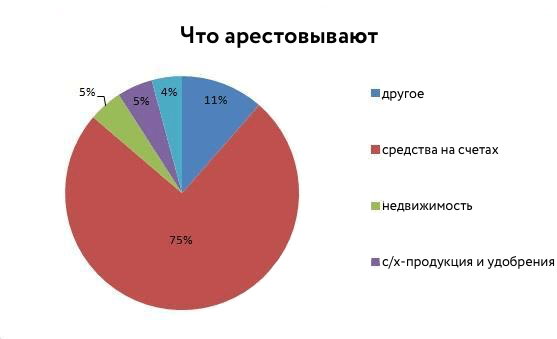 3,5 месяца в среднем длится арест. В 75% случаев арест накладывается на денежные средства и счета компании.