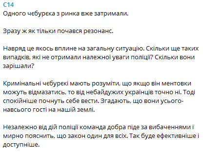 "Уголовные чебуреки должны понимать, что если он ментовки может отмазаться, то от неравнодушных украинцев точно нет… Независимо от действий полиции команда хорошая пойдет по прощения и мирно объяснит, что закон один для всех. Так будет более эффективно и доступно", - сказано в сообщении организации.
