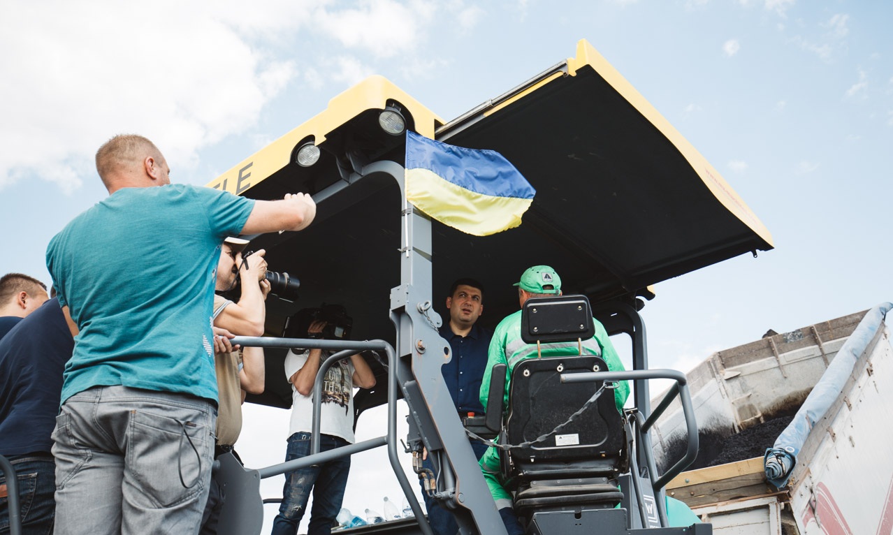 – Не зупиняйтеся, бо прилипнете і залишитеся на цій дорозі, – досить символічно сказав Гройсман на ходу, щоправда, не зрозуміло кому конкретно. Біля одного з найбільших асфальтовкладальників – не стримався і поліз у Кабіну.
