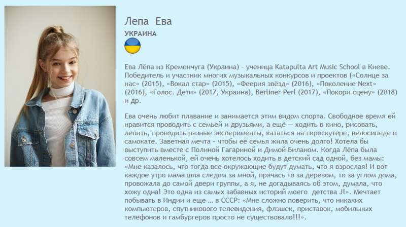 На официальном сайте конкурса Ева отмечена, как его участница.