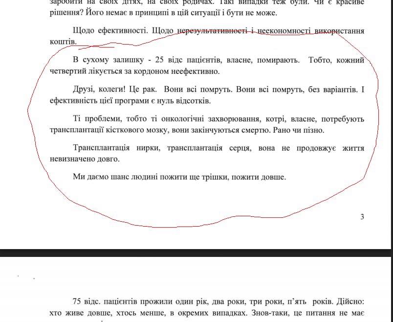 «Касательно эффективности. Касательно нерезультативности и неэкономности использовании денег. В сухом остатке — 25 процентов пациентов, собственно, умирают. То есть, каждый четвертый лечится за рубежом неэффективно. Друзья, коллеги! Это рак. Они все умрут. Они все умрут без вариантов. И эффективность этой программы ноль процентов!» — заявил Линчевский.