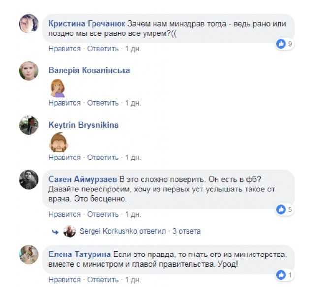 Пользователи социальных сетей возмущены заявлением заместителя главы и. о. Министра здравоохранения Украины Ульяны Супрун Александра Линчевского относительно онкобольных людей.