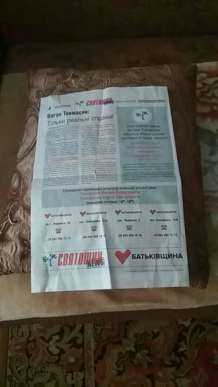 Теги: избирателиПодкупСвятошинВО БатькивщинаПиарАгитацияРекламаПродуктовые наборыВаган Товмасян