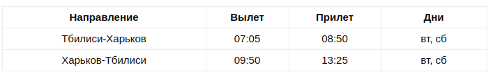 Рейсы Харьков-Тбилиси будут выполняться с 12 июня по вторникам и субботам, а Харьков-Батуми - с 13 июня по средам и субботам.