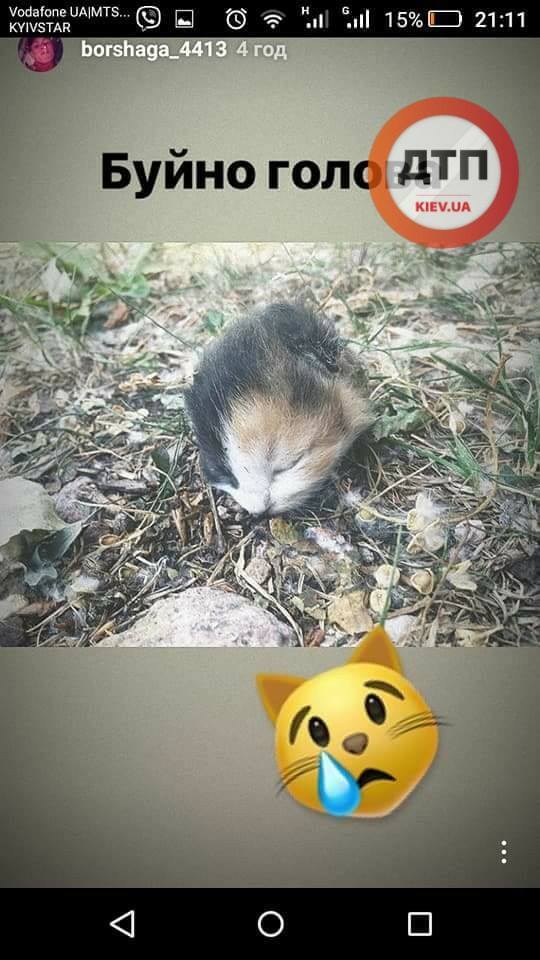 "Внимание розыск!!! Знакомьтесь: проживающий в районе школы 13, малолетний утырок Ваня (там же и тусует). Убивает животных, скидывает фото в инсту", - сообщается в Facebook dtp.kiev.ua.