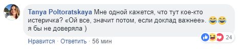 Правда, в комментариях к посту Рыбальченко многие выступили не на его стороне. Так, одна из пользовательниц упрекнула автора в неадекватном поведении, процитировав его же сообщения Карпюку: "Мне одной кажется, что тут кое-кто истеричка? "Ой все, значит потом, если доклад важнее". Я бы не доверяла".