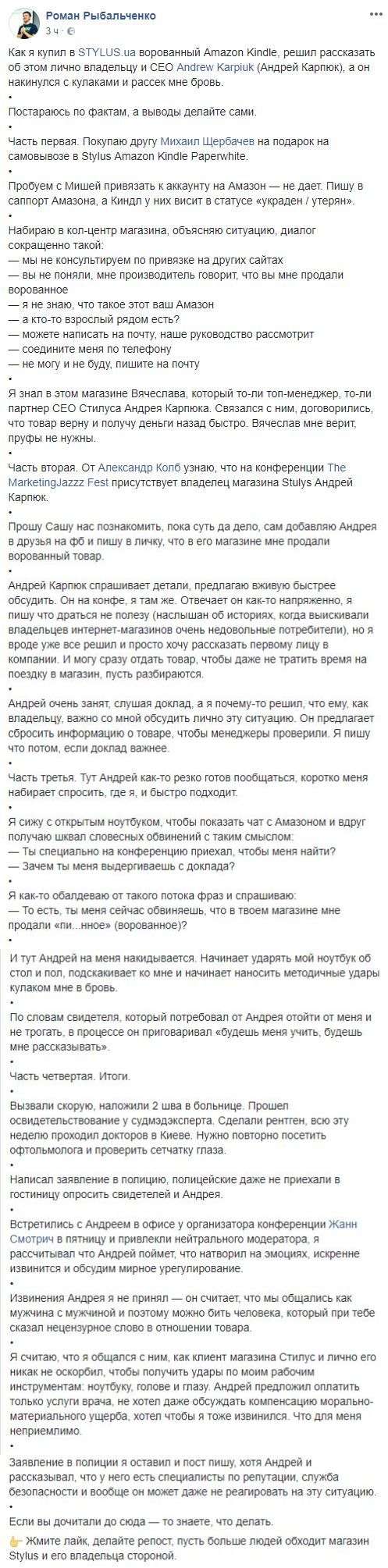 Теги: Карпюк АндрейКлиентыРыбальченко РоманStylus.uaгаджетыКонфликтСкандал