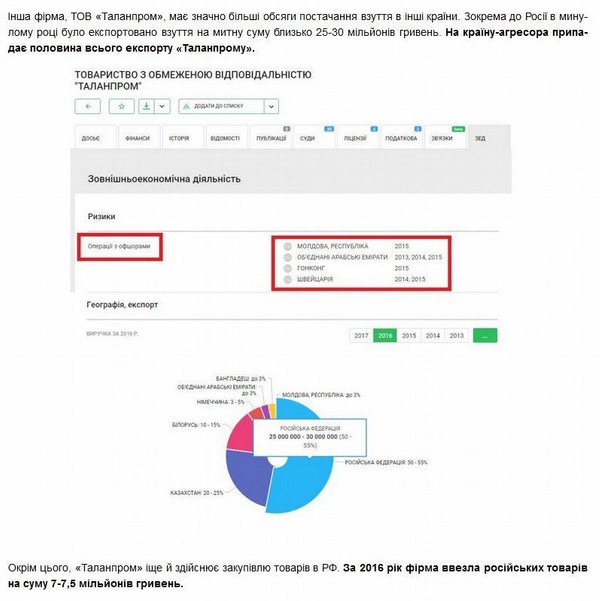 На втором скрине данные из Юконтрола про торговлю с Роиссей фирмы «Талан» — обувного монополиста Министерства обороны Украины. Один станок делает обувь для наших бойцов, другой станок – для страны, присылающей людей убивать наших бойцов. Ну не босыми ж присылать к нам убийц, мы ж еще и прикурить на этом должны, да?