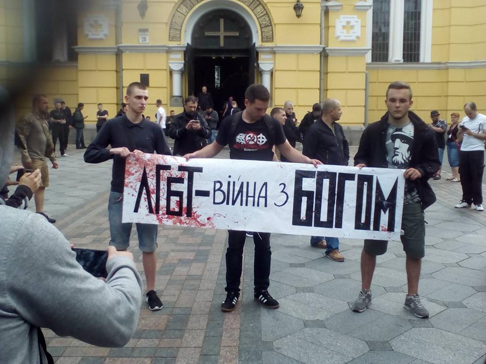 Участники акции планировали собраться в 09:00 возле Национальной оперы Украины, однако на место начала шествия заранее прибыли протестующие против его проведения.