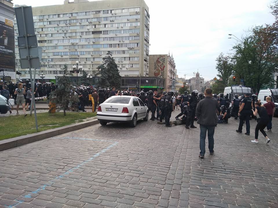 В свою очередь в пресс-службе Нацполиции заявили, что правоохранители применили силу против националистов, поскольку те перекрыли дорогу на маршруте движения "Марша равенства".