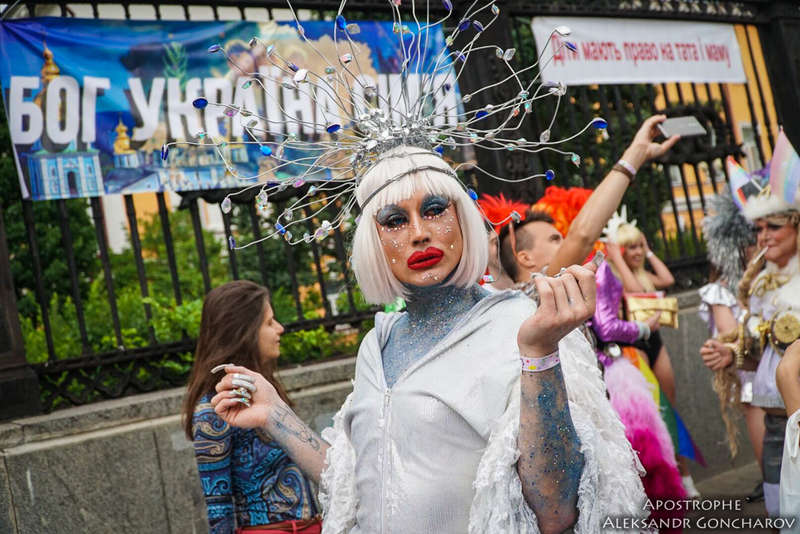По традиции с собой они принесли плакаты и радужные флаги, которые являются символами ЛГБТ-сообщества. Также среди участников акции были достаточно эпатажные персонажи.