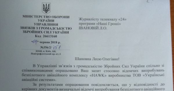 Определяющие ведомственные испытания HAWK от семейной фирмы Розенблата проходил в Государственном научно-испытательном центре Вооруженных сил (ГНПЦ ВСУ) с 31 мая по 29 июля 2016 года. Испытания комплекс прошел успешно, заявленные характеристики подтвердил и может рассматриваться для контрольной эксплуатации - говорится в ответе ВСУ на запрос телепрограммы. Протокол испытаний - государственная тайна.