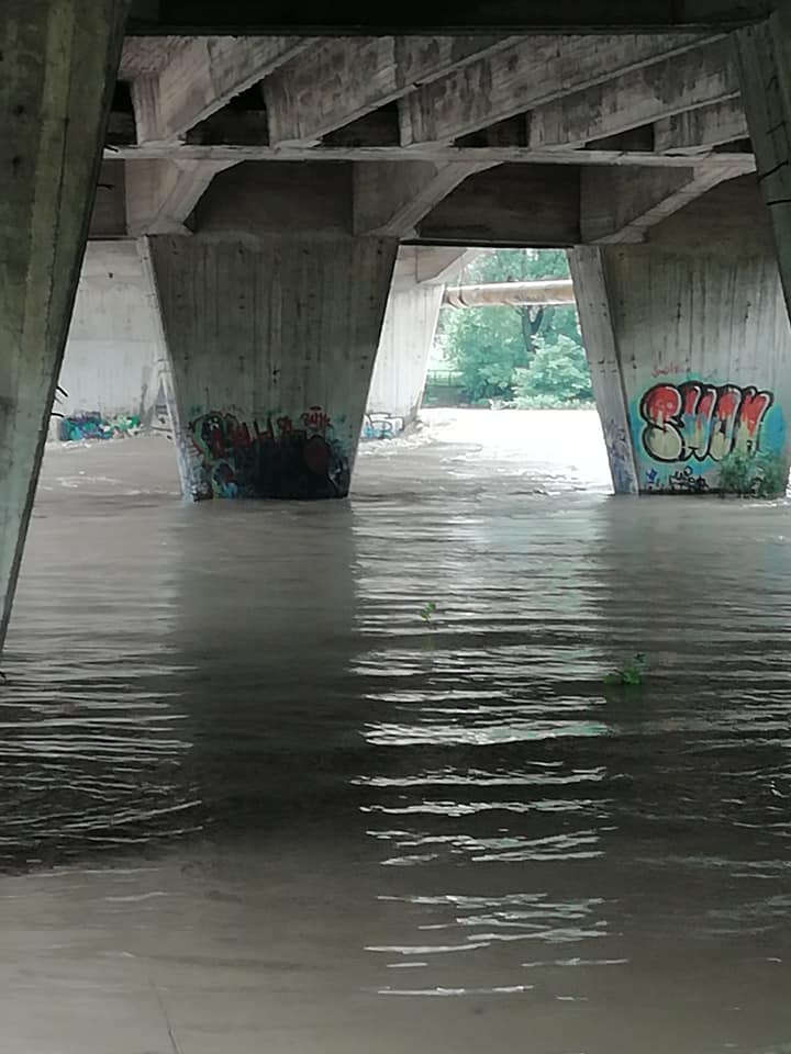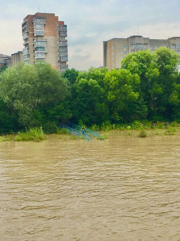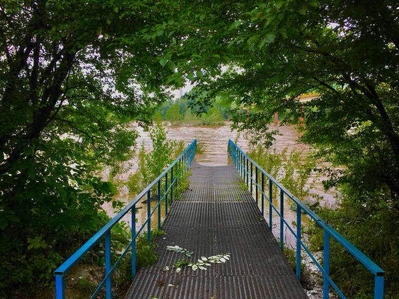 Обе Быстрицы вышли из берегов и смыли общественные пляжи. На фото заметно, что вода поднялась намного выше обычного уровня.