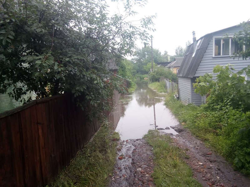 Опять затопило улицу Гончую в районе Стрижня. Причина – хаотичная застройка и закрытые шлюзы