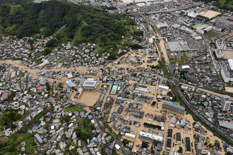 На западные регионы Японии 7 июля обрушились сильные ливни, которые спровоцировали большое количество оползней и наводнений.