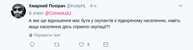 Об этом пишет в своем Twitter "КРЫМский бандеровец".