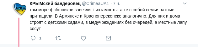 "Там море ФСБшников завезли + ихтамнеты. А те с собой семьи в*тные притащили. В Армянске и Красноперекопске аналогично. Для них и дома строят с детскими садами, в медучреждениях без очередей, а местные лапу сосут", - добавил он.