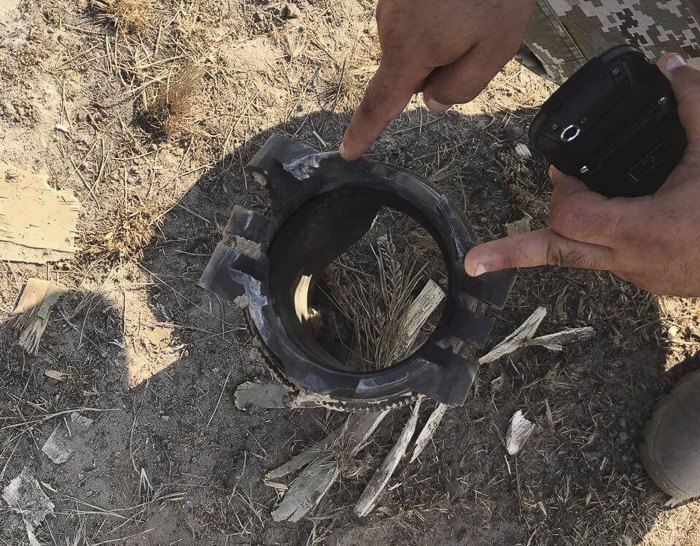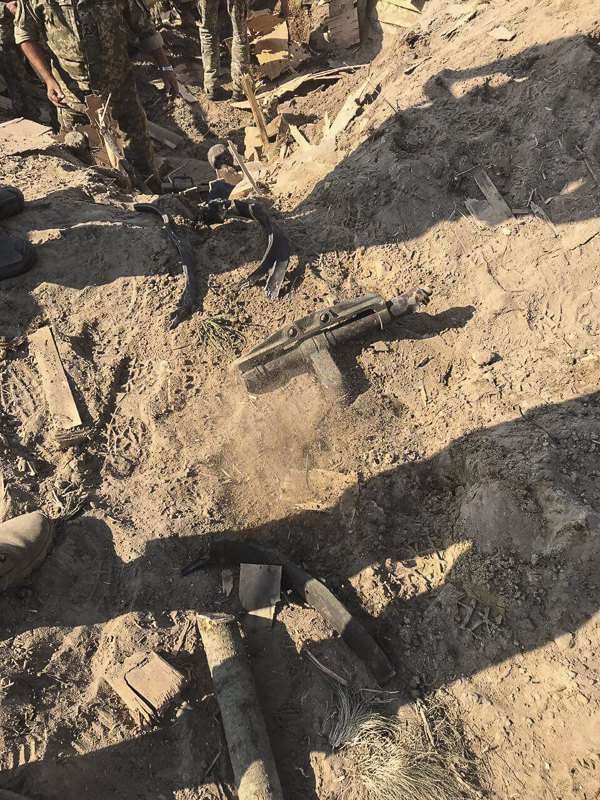 Ствол миномета результате взрыва разорвало на куски, целой осталась только нижняя часть, менее 40 см длиной.