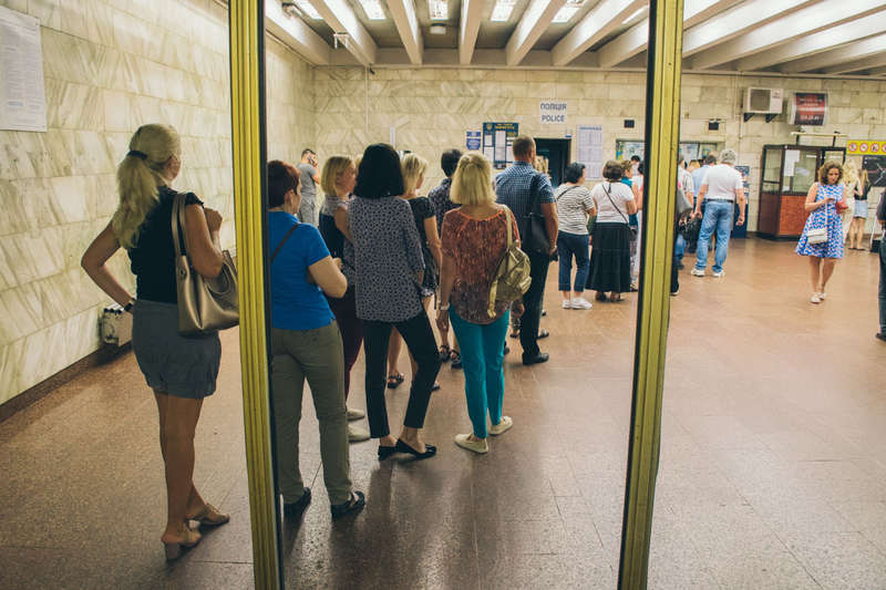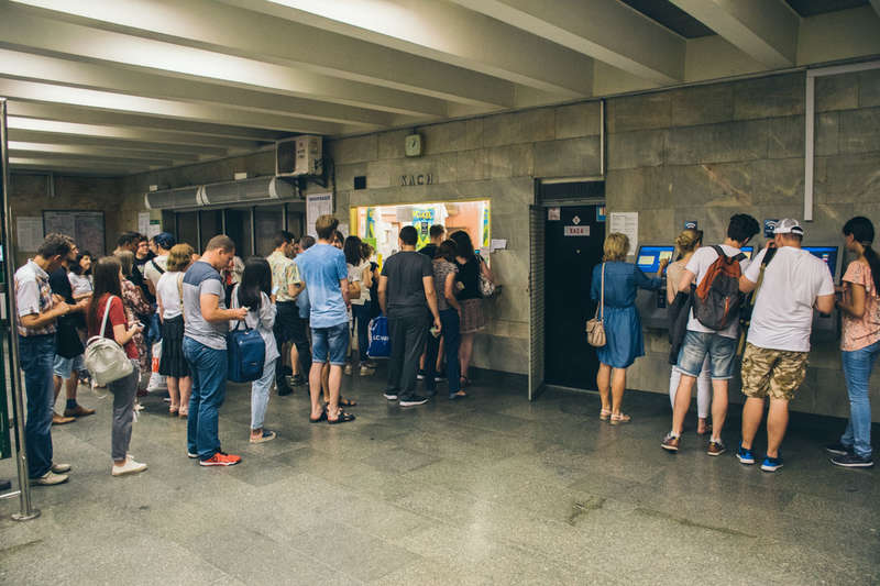 В киевском метрополитене 13 июля на многих станциях выстроились огромные очереди к кассам и автоматам пополнения бесконтактных карт.