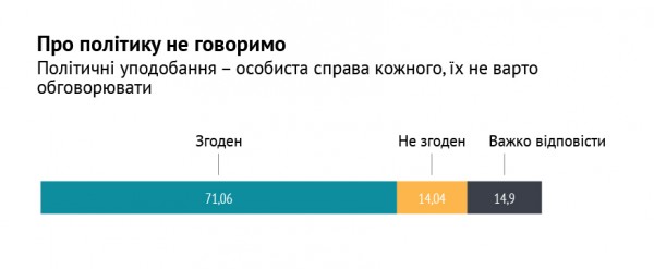 Мы замеряли активность населения, согласно этому выделили три группы населения: гиперактивные, активные и пассивные. Это были не политические вопросы, а вопросы защиты интересов (дома, двора, района). Но вместе с тем обнаружили тенденцию: чем активнее человек, тем более проукраинский.