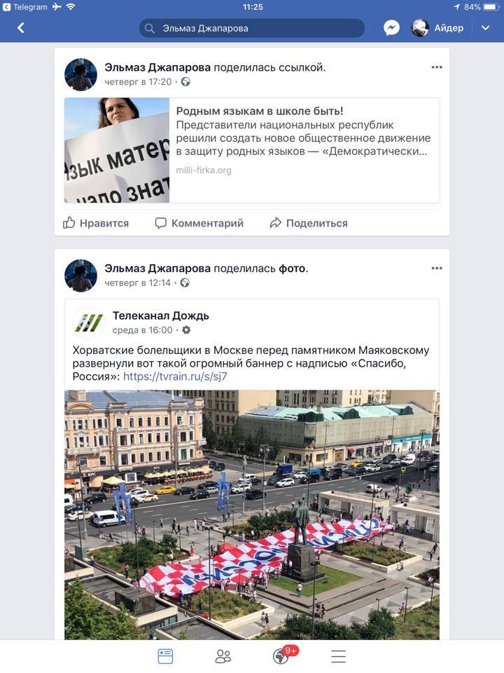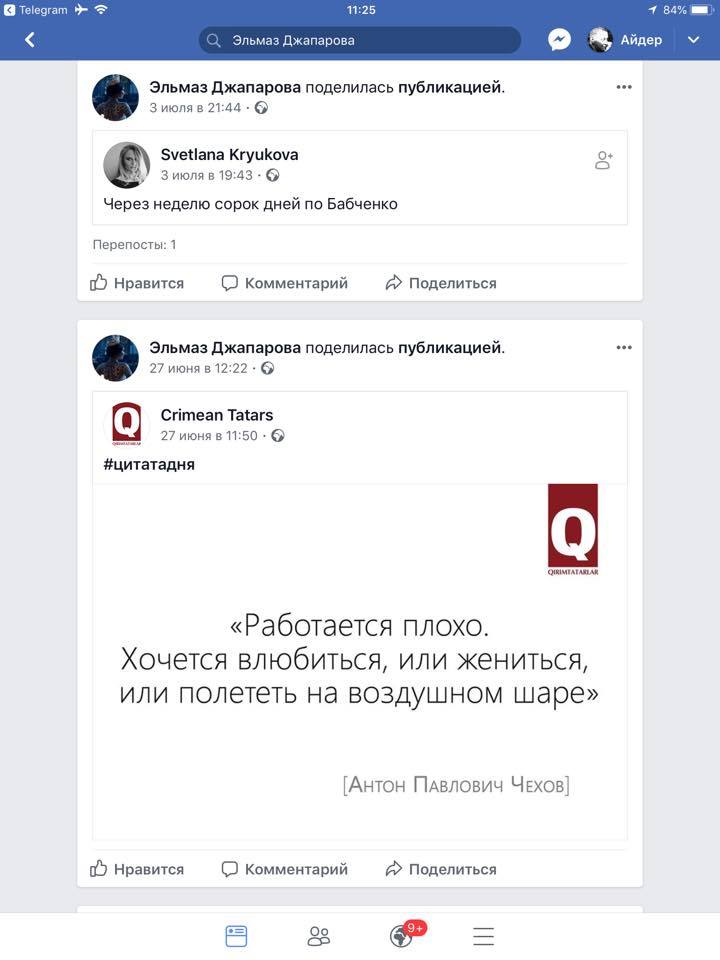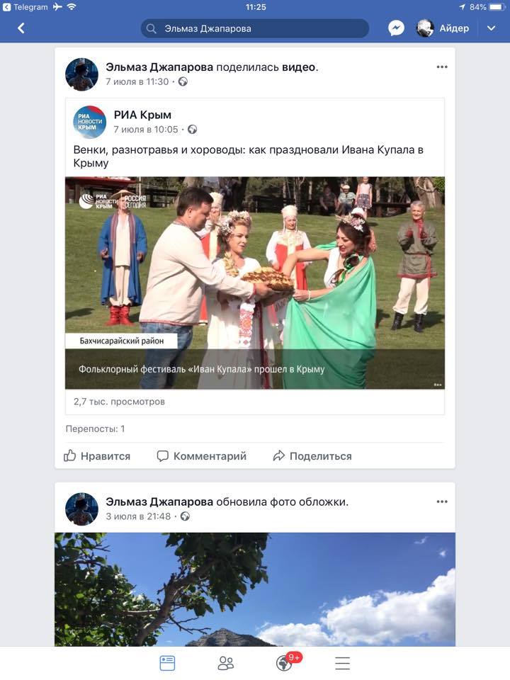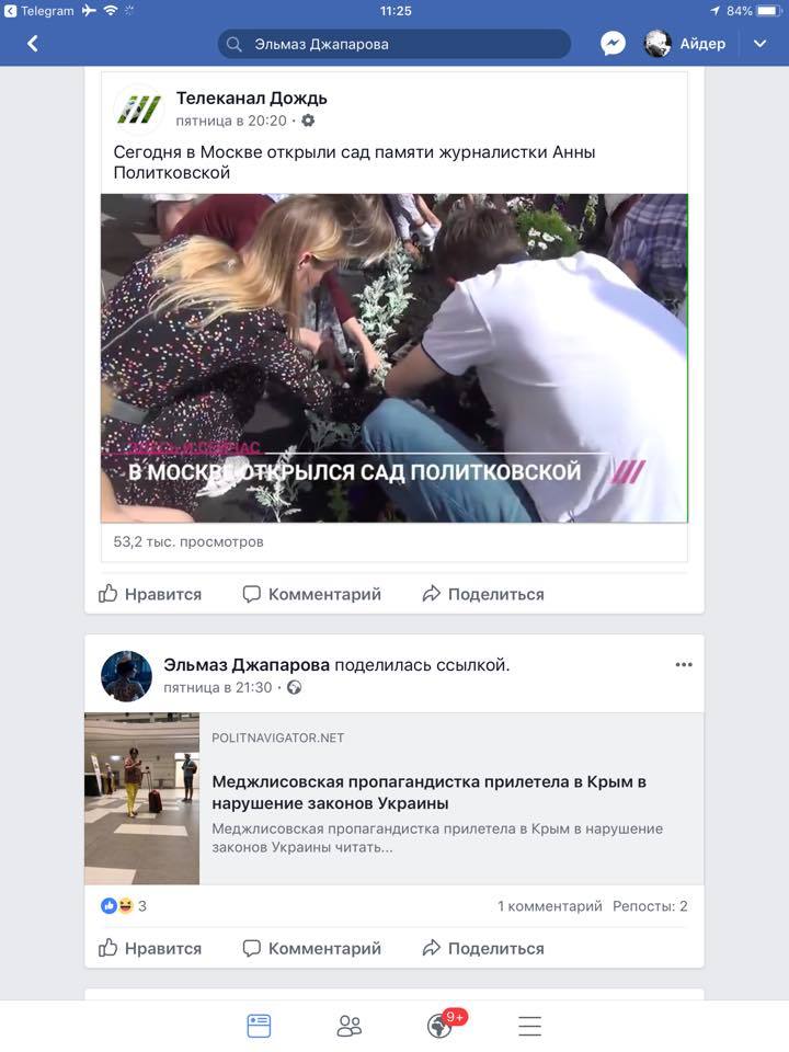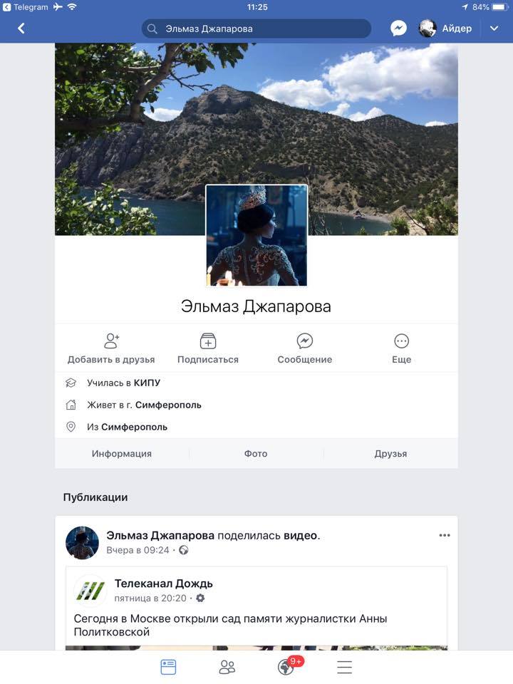 Он показал профиль некой Эльмаз Джапаровой, которая распространяет пропагандистские материалы в Facebook.