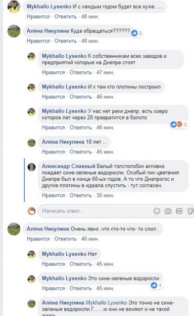 По ее словам, вода стала мутная, сине-зеленого цвета, также там плавает два сантиметра жижи.