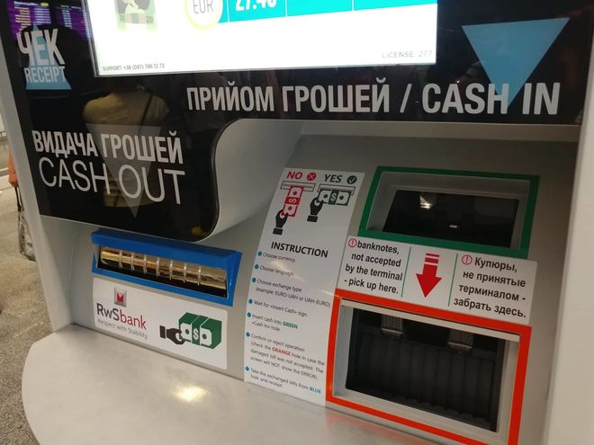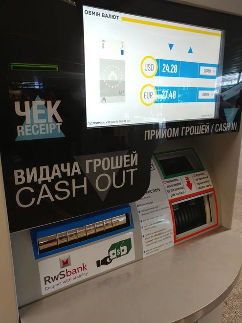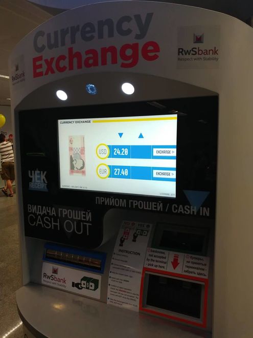 Украинские банки начали устанавливать первые валютообменные аппараты. Два первых появились в здании аэропорта «Борисполь», они принадлежат RwS bank.