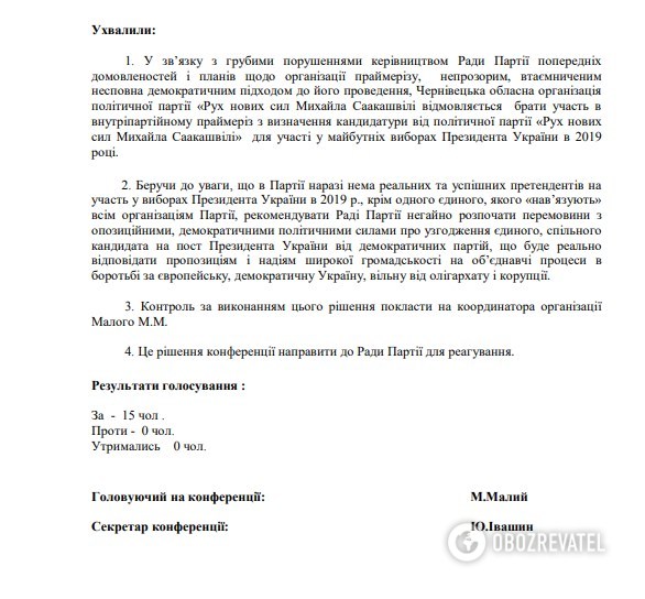 Кандидатура Деревянко, который по информации OBOZREVATEL решил фактически "подмять" политсилу под себя, не нашла поддержки в Сумской и Черновицкой областях.